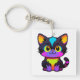 En livfull, kawaii-tecknad katt-sticker med ljusa neonfärger, stora ögon och ett glatt uttryck. Perfekt för barnrum, hantverk, dekorationer och lekfull varumärkesprofil.