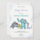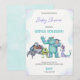 Inbjudan till baby shower med färgglada tecknade monster med lekfulla uttryck. Texten belyser en firande för "Sophia Robinson" med information om RSVP.