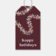 Skapad för att samordna med julkortssamlingen "Tinsel Garland", har denna festliga presenttagg en färgglad tinselgirlang med hälsningen "Glad högtid" placerad under. Det finns utrymme på baksidan av taggen för att skriva namnen på den som ger och mottar presenten.