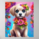 Färgglad valp och blommor Barnväggsposter Poster
