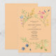 Fira vårens väsen med denna vackert livfulla och eleganta bröllopsinbjudan. En sömlös sammansmältning av modern design och botanisk charm, den visar upp mjuka pastellfärger, inklusive persikopink, och utsökta akvarellvildblommor. Den eleganta monogrammen på baksidan ger en personlig, sofistikerad touch, vilket gör detta till det perfekta valet för ett bröllop som förkroppsligar både naturlig skönhet och boho-chic förfining. En oförglömlig inbjudan att sätta tonen för din speciella dag!