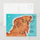 Färgglad, beskrivande karta över Mexikos Yucatan-halvön återanvänd på ett vykort.