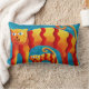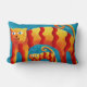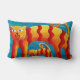 En färgrik blå, orange och röd fantasifull katt och kattunge ländkudde. Ett perfekt tillskott till alla rum i ditt hem. Av Julie Nicholls©