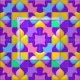 Livlig, färgrik abstrakt konst med geometriska former och mönster på en lila bakgrund. En konstnärlig representation av en lekfull och dynamisk komposition, utformad med ljusa, djärva nyanser för estetisk tilltalande.