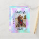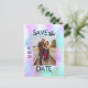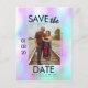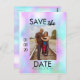 Postkort för Spara datum med ljust holografiskt liknande abstrakt bakgrund