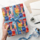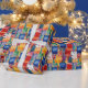 Kvastmålade fyrkanter och rektanglar i ljust blått, rött, orange och gult gör ett sött och roligt presentpapper för alla tillfällen för barn eller vuxna.