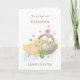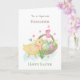 Påskkort till dotter med färgglada ägg och liten kyckling.