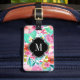 Färgglada akvarellblommor svart accentmonogram bagagebricka