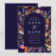 Färgglada akvarellvildblommor Navy Bröllop Spara datum