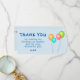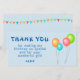 Färgglada ballonger barnkalas tackkort. Tackkort för barnens födelsedagsfest. Denna design kommer med ballonger i röd, blå, rosa och grön färg på en blå bakgrund. Tacka din familj och vänner. Anpassa kortet med ditt barns namn och ett tackmeddelande.