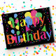 Färgglada gratulationskort med tomt fält. Ballonger i olika livfulla färger med stjärnor, konfetti och födelsemössor. Svart bakgrund. Anpassa genom att lägga till din handskrivna hälsning.
