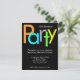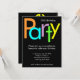 Söt inbjudan till 30-årsdag, eller anpassa med valfri ålder. Rolig och glad blockstilsbokstav i ljust orange, blå, lila, grön och gul på svart bakgrund. Slick modern design är perfekt för inbjudningar till herr- eller damfest. Anpassa online med dina evenemangsuppgifter.