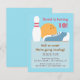 För äldre barn och tonåringar kanske de inte vill ha en fullskalig födelsedagsfest utan snarare bara umgås med sina närmaste vänner! Hur vore det med en bowlingfest? Denna färgglada men rena bowling-födelsedagsinbjudan har en röd och vit bowlingkägel, en orange bowlingklot och blå och vita bowling-skor! Anpassa enkelt med fests detaljer.
