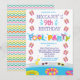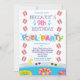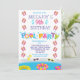 Denna färgglada personliga pool splash-fest inbjudan har en pool längst ner med lemonad, flytande innerslangar och flip flops längs sidorna.