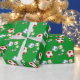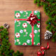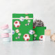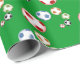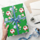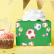 Moderna färgglada fotbollar på grönt inpackningspapper.