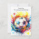 Uttryck din tacksamhet med vårt färgglada fotbollstakknkort med vattenfärg för barn, ett genomtänkt sätt att tacka dina gäster för att de deltog i det fotbollstemanerade roliga. Med dynamiska vattenfärgsillustrationer av fotbollsspelare och fotbollar fångar detta tackkort andan av lagarbete och kamratskap.