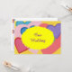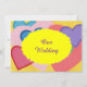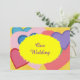 En målning av färgglada hjärtan, varav några är skiktade i olika nyanser, med Vårt bröllop tryckt i en gul oval, är tryckt på anpassade bröllopsinbjudningar. Du kan enkelt anpassa texten på mallformulären. Tack för att du handlar hos CherylsArt på Zazzle.
