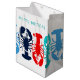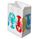 Medelstor presentpåse med texten "grattis på födelsedagen" och stora, färgglada humrar runtomkring. Ändra texten till vad som helst, eller ta bort den. Om du ändrar storlek på påsen kan det innebära att texten inte passar korrekt, men bilden kommer att göra det.