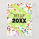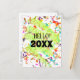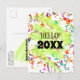 Denna nyårsdesignade vykortomslag har färgglada konfetti och en grön slinga. Anpassa texten på framsidan och baksidan, ta bort eventuell text eller klicka på anpassa för att välja en annan typsnittsstil, storlek och färg du föredrar.