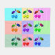 Färgglada Körsbär: blå, ljusblå, orange, gul, rosa, magenta, lila, violett, ljusgrön, bladgrön, olivgrön - skapad i Pop Art-stil. Ljust, optimistisk Design. Optimismens roll i design - att bidra till att skapa en kultur av optimism.