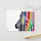 Glad färgglad randig zebra vilddjursmålning, fylld med ljusblå, mörkare livfull kunglig blå, akvagrön, het rosa, orange, urblekt mörkröd, gul, grå, svart, vit, livfull regnbågsfärgad illustration, på en enkel vit bakgrund. Unik, trendig sommarfärg, modern, konstnärlig zebramålning.