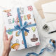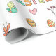 Söt presentpapper för den kommande påskhelgen. Perfekt för barn! Mönstret är mycket färgglatt och har många små tecknade bilder som visar flickor och pojkar med kaninöron, påskägg, korgar, små kycklingar, hjärtan, blommor och ordet Påsk i vackra samordnade färger. Illustrerad och designad av Patricia Alvarez.
