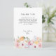 Vacker mjuk pastell blomster tack-kort med en färgglad blomsterarrangemang av rosa, persika, orange och gula akvarellblommor.