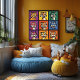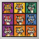 En livfull popkonst-design med uttrycksfulla tiger-ansikten arrangerade i ett färgglatt rutnät. Djärva linjer, lekfulla uttryck och slående färger ger denna grafiska konstverk en rolig, energisk personlighet, vilket gör den perfekt för iögonfallande kläder, accessoarer och modern pop-inspirerad dekoration.
