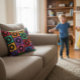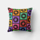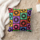 En färgrik retro kastkudde för dens eller sovrumsdekor design i färgglada rutor med ett Pop Art Vinyl Record tema