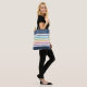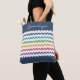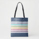 Uppdatera din sommarskåp med denna personliga shoppingväska med färgglada vågiga ränder i nyanser av blå, turkosgrön, gul och rosa. Kraftig marinblå färgblockering, trendiga scallopade kanter och ett anpassningsbart monogram fullbordar denna roliga design. Ändra namnet för att skapa en unik present som är perfekt för tonåringar och kvinnor i alla åldrar. Oavsett om den används för shopping, en dag med vänner eller en helgutflykt, kommer denna mångsidiga väska att tillföra en touch av färg till vilken outfit som helst, vilket gör den till den perfekta accessoaren för sommaräventyr.