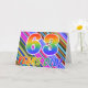 Framsidan av denna livfulla, roliga och iögonfallande födelsedagsgratulationskortdesign har ett mönster med flerfärgade ränder, tillsammans med meddelandet "63 år!" som har ett flerfärgat regnbågsinspirerat övergångsmönster. Insidan har ett anpassat gratulationsmeddelande, eller kanske kan vara tomt om ett meddelande ska skrivas för hand istället. Ett gratulationskort som detta kan vara ett roligt och lyckligt sätt att skicka ett meddelande till någon som firar sin sextiotredje födelsedag.