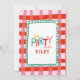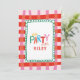 Gör din fest oförglömlig med denna livfulla "Let's Party" födelsedagsinbjudan för barn, med en djärv röd och rosa gingham-rutig bakgrund, lekfull flerfärgad typografi och en fantasifull grön scalloperad kant. Anpassa med ditt barns namn och festdetaljer för en rolig och glad design som är perfekt för födelsedagar, lekdater eller andra speciella sammankomster. De starka färgerna och glada stilen sätter tonen för en dag full av leenden, skratt och minnen.