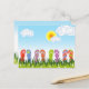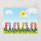 Färgglada sommarflipflops kul i soliga trädgården vykort