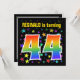 Denna roliga, spännande och livliga design för födelsedagsfestinbjudan har ett färgglatt mönster med stjärnformer, tillsammans med siffran "44" med ett flerfärgat regnbågsspektrum eller gradientmönster. Namnet på framsidan kan anpassas. Baksidan har anpassningsbar information om festen. Födelsedagsfestinbjudningar som denna kan skickas till potentiella deltagare för en födelsedagsfest som hålls för att fira någon som fyller fyrtiofyra.
