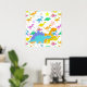 Färgglada Tecknade Dinosaurier Affisch. Tre söta små dinosaurier: blå Stegosaurus, orange Diplodocus och gul Triceratops och en färgglad dinosaurie mönster (Stegosaurus, T+Rex, Triceratops och Parasaurolophus) bakgrund affisch tryck. Denna söta dinos tecknade affisch är helt anpassningsbar, lägg till din text och bilder! En glad färg dinosaurier tecknad affisch present!