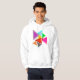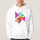 Storlek 2X-Stor, Män, Vit, Vuxen Pullovertröja med Huva, Med en Teckning / Design , i Färgglada Trianglar, på Framsidan av den, Baksidan, av Tröjan med Huva, är Tom.= (Teckning / Design , av P.J.M.)= Med den Vita Bakgrunden borttagen.