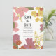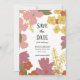 Meddela om din speciella dag med denna vackra blommiga "Spara datumet" -inbjudan! Med en charmig blandning av mjuka rosa, rika orange och levande gula nyanser utstrålar denna design värme och glädje, perfekt för att sätta tonen för din kommande fest. De handritade blommorna ger en delikat och konstnärlig känsla för din speciella dag. Anpassa den med dina evenemangsuppgifter för att skapa ett minnesvärt första intryck för dina gäster.