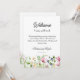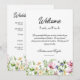 Detta eleganta färgglada vildblommor vigsel välkomstpåse brev & tidsschema kort med en mycket elegant kalligrafi kan enkelt anpassas för ditt alldeles speciella evenemang! Med detta personliga kort är du ett steg närmare att förvandla din fest till ett minnesvärt evenemang.