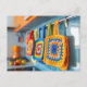 Färgglada virkade grytlappar gjorda av Farmor-ruto Vykort