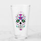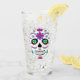 Glaset har en färglös, traditionell, mexikansk sockerskalle.