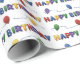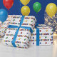 Ett ljust och färgglatt födelsedagspresentpapper med massor av ballonger.