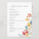 Omfamna sommarens elegans med detta färgglada vildblomsbröllopsprogram. Noggrant utformat med en förtrollande akvarellblomsterdesign, är denna handfläkt inte bara praktisk - det är en fängslande konstnärlig skapelse. Varje vildblomma fångar essensen av en sommarträdgård i full blom, och skapar en charmerande och livlig atmosfär. De livfulla färgerna bidrar till den festliga känslan samtidigt som de tjänar ett praktiskt syfte - att hålla dina gäster svala och bekväma.