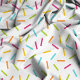 Tillsätt en färgstark nyans till dina projekt med detta livfulla godisprydnads-mönster! Med en lekfull samling regnbågsfärgade prydnader utspridda över en skarp vit bakgrund är denna design perfekt för att tillföra en rolig, fantasifull touch till alla skapelser. Idealiskt för barnkläder, festsmycken eller festliga hantverksprojekt, ger detta tyg glädje och kreativitet till liv. De livliga färgerna och det dynamiska mönstret gör det till ett måste för alla som vill tillföra lite extra glädje till sina designer.