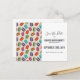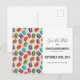 Ett vykort för att spara datumet med ett sött mönster av macarons i många olika färger med ett svagt prickmönster i bakgrunden.