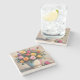 Denna underlägg har en mängd livfulla rosor, inklusive klassiska röda, mjuka rosa, soliga gula och kungliga lila, konstnärligt arrangerade i en snygg dekorativ kruka.