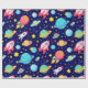 Färgglatt rymdtecknad mönster presentpapper