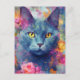 Färgglatt rysk blå katt vykort
