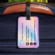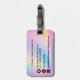 Resa i stil med vår färgstarka Mjuka Pastel Färg Gradient Chic Monogram Luggage Tag! Den här märkrn har en drömmande bakgrund för pastellövertoning i blek-blått, gult, rosa och lila, och är lika snyggt som funktionell. Anpassa framsidan med ditt monogram i skarp vit typografi, ditt namn i elegant svart skriptkalligrafi och din fullt nedan i klassisk svart text. På baksidan finns anpassade fält för din kontaktinformation, t.ex. e-post, mobil och adress. En perfekt som kombinerar chicens utformning och praktiska möjligheter för dina resor eller som en tänkbar gåva!