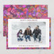 Den här livfulla hökkortet har en djärv, abstrakt ram i rosa, lila och orange toner, tillsammans med plats för ett familjefoto och personlig text. “God Jul” visas högst upp i klassisk skrivmaskinsstil för en varm, modern touch. Perfekt för kreativa familjer, designmedvetna hushåll eller någon som vill skicka festlig glädje med färg och personlighet.