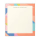 Lägg till en färgglad touch till dina dagliga anteckningar med detta färgglada anteckningsblock med geometrisk kant och personligt namn. De djärva, livfulla kanterna ramar in ditt namn vackert och gör varje sida speciell. Det är en perfekt kombination av kreativitet och praktiskhet för alla som älskar personlig pappershandel med en färgstark touch.